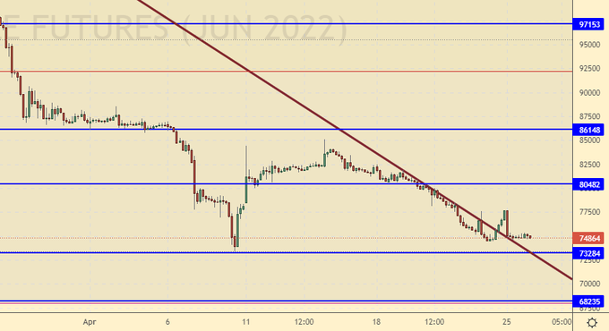 Покупка: нет. Кто в позиции от 77500, держите стоп на 74800. Цель: 85000.