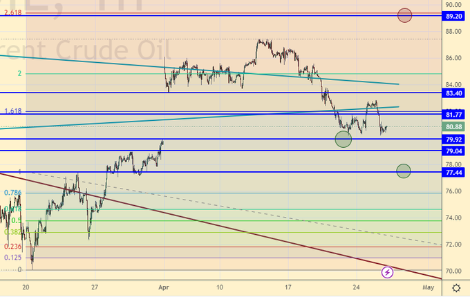 Покупка: сейчас, при подходе к 80.00 и 78.00. Стоп: 77.00. Цель: 90.00.