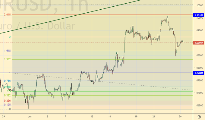 Продажа: нет. Кто в позиции от 1.1000, перенесите стоп на 1.0970. Цель: 1.0800.