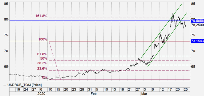 Рубль: выступление президента по теме «вирус» показало нам то, что власть будет реагировать постепенно. Одна неделя карантина вряд ли поможет. Индия, например, закрылась на три недели. В спокойные времена существование такого мегаполиса как Москва дает преимущества для торговли и логистики, но в нынешней ситуации концентрация большого числа людей в одном месте создаст дополнительные проблемы. Если всё сложится так, что нам удастся пройти по тонкому льду, то рубль уйдет в диапазон 70.00 – 75.00, так как проблемы в других странах, в том числе в США, также будут нарастать.