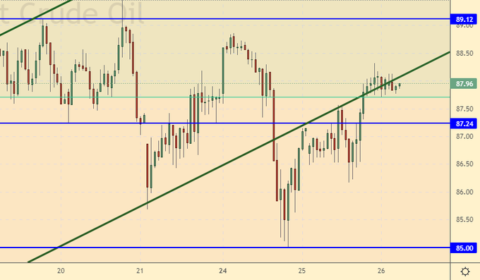 Продажа: сейчас. Стоп: 88.70. Цель: 80.60. Кто в позиции от 88.00 и 87.00, держите стоп на 88.70. Цель: 80.60.