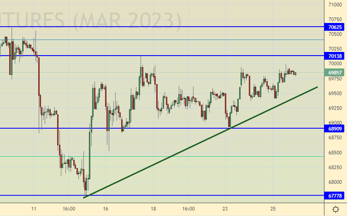 Продажа: нет. Кто в позиции от 69.50 держите стоп на 69.60. Цель: 65.60.