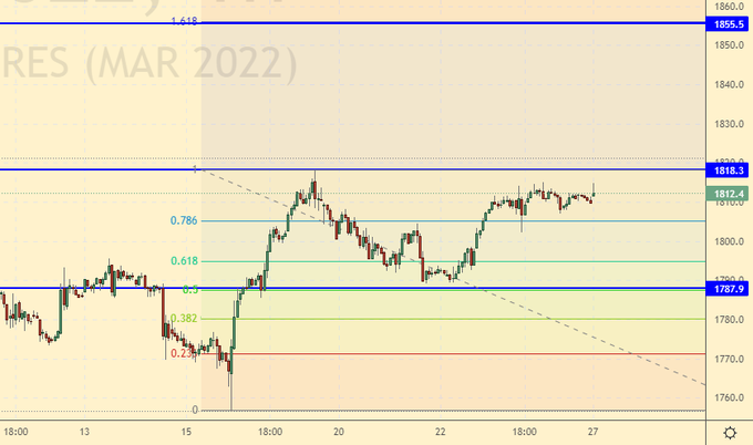 Если рынок вырастет выше 1820 это может создать предпосылки для движения к 1850. Откат к 1800 можно использовать для покупок. Ни у кого нет сомнений в том что в 2022-м году США продолжат печатать деньги под тем или иным предлогом.
