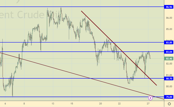 Рынок не хочет уходить ниже 80.00 долларов за баррель, а это значит, что шансы на рост цен в ближайшие дни сохраняются. Приближается автомобильный сезон, что должно повысить спрос на топливо. Нельзя исключать, что если в Европе не введут нормирование на заправках, как это было осенью, например во Франции, то народ будет запасать топливо впрок, ставя канистры в гаражах, что снизит уровень предложения.