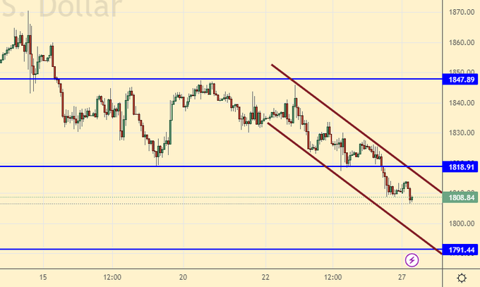 Идем мы к 1790. Дальнейшее падение, к уровню 1720, также возможно, но не исключено, что рынок остановится на несколько дней. Отметим, что если на фондовом рынке США дела будут плохи, то мы можем в перспективе уйти ниже 1720. Осторожные инвесторы будут вкладываться сейчас в американские облигации, а не акции.