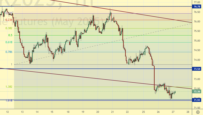 Продажа: при подходе к 73.50. Стоп: 74.50. Цель: 69.00.