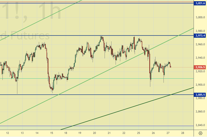 Продажа: нет. Кто в позиции от 2929, держите стоп на 2962. Цель: 2500.