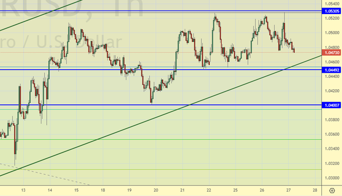 «Если мы не увидим взятия 1.0530, то это может привести к серым мыслям по поводу будущего евро», – это фраза вчерашнего дня. Вот мы и не видим взятия 1.0530, вместо этого тычок вниз. Придется продавать.