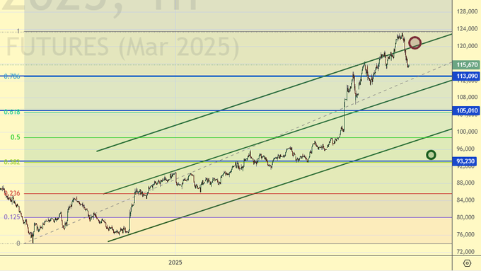 Продажа: нет. Кто в позиции от 122370, перенесите стоп на 124100. Цель: 105000 (93000).