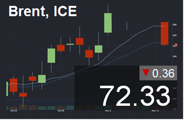 Цена в долларах за баррель. Для пересчета в доллары за тонну нефти марки Brent, необходимо цену умножить на 7,59.