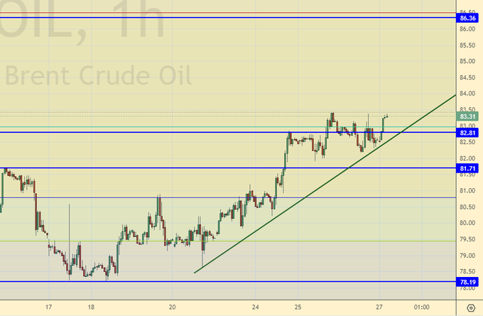 Продажа: нет. Кто в позиции от 82.80, перенесите стоп на 83.58. Цель: 66.00?!