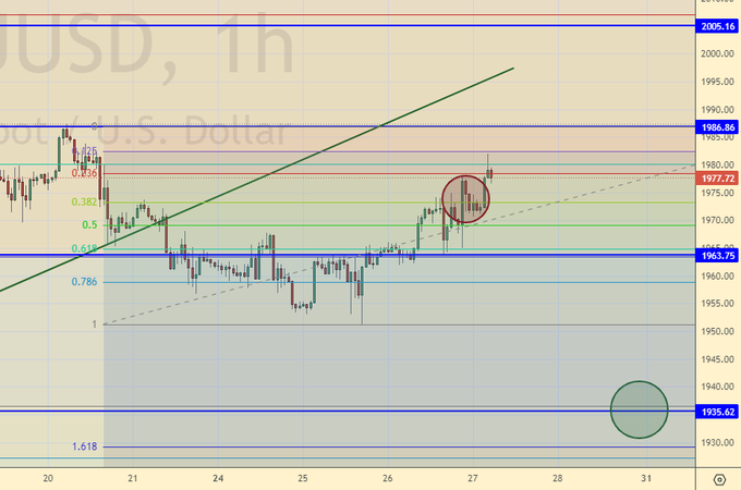 После повышения ставки в США рост не выглядит ультимативным. В случае возвращения котировок ниже 1970 можно искать новые возможности для продаж. Возможно, что сейчас народ ринется отыгрывать предположение, что вчера было последнее повышение ставки в этом цикле и далее доллар как бы должен слабеть, однако статистика может оказаться не такой радужной, в частности инфляция, которая может вновь разогнаться из-за роста цен на энергоносители.