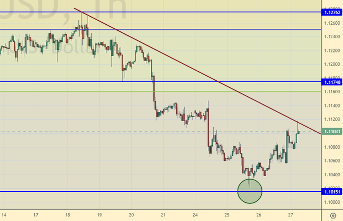 Покупка: при подходе к 1.0900. Стоп: 1.0870. Цель: 1.2000 (может быть пересмотрена). Кто в позиции от 1.1020, перенесите стоп на 1.1030. Цель: 1.2000 (может быть пересмотрена).