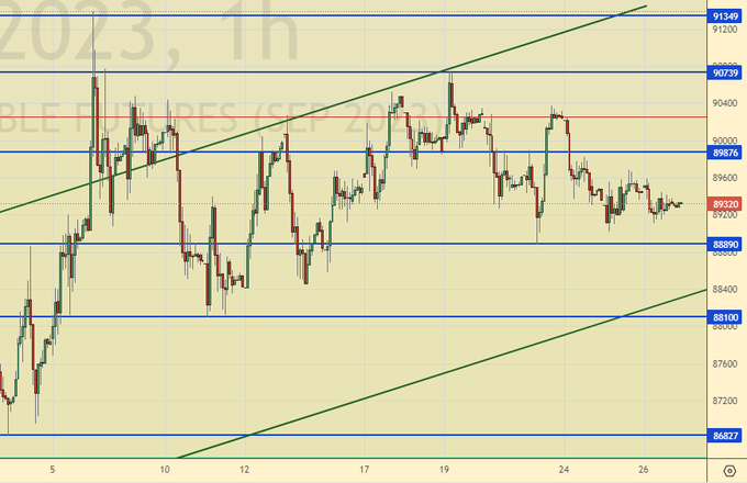 Продажа: нет. Кто в позиции от 90000, держите стоп на 90600. Цель: 85000.