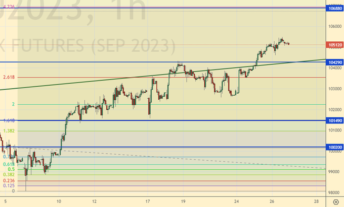 Покупка: нет. Кто в позиции от 104100, перенесите стоп на 103200. Цель: 106800 (112000).