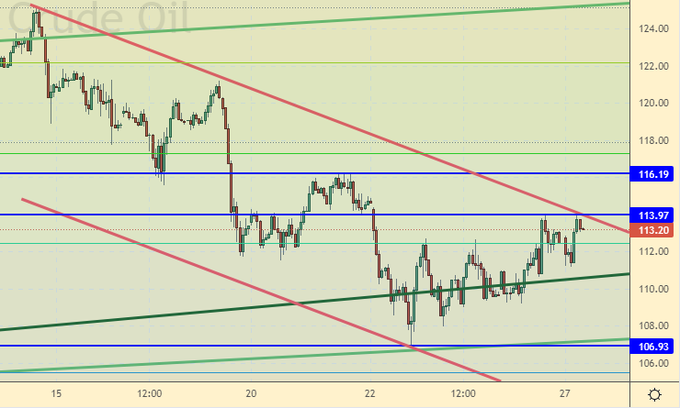 Рынок нефти пытается подняться к 115.00, однако рост буровой активности в США и плохие перспективы мирового ВВП не дают ценам быстро подниматься вверх.