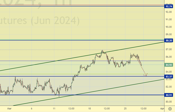 Покупка: при откате к 83.40. Стоп: 82.30. Цель: 94.00.