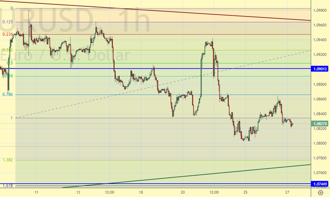 Сегодня мы попробуем пробиться ниже 1.0800, что откроет ход к 1.0750. Если уровень 1.0750 будет пробит вниз, то возникнет угроза хода к 1.0360. Дальнейшее падение также возможно, вплоть до паритета, но для этого ЕЦБ должен начать цикл снижения ставок.
