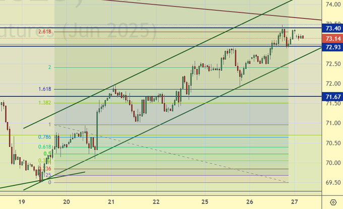 Быки смогли пройти к 73.50 на фоне падения запасов нефти в США. Это делает ситуацию для продавцов неприятной. Если вы примите решение закрыть шорт на откате к 72.00, который скорее всего состоится, то это будет не самым плохим решением.