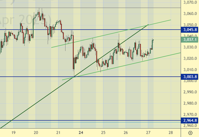 Продажа: нет. Кто в позиции от 3036, держите стоп на 3047. Цель: 2700?