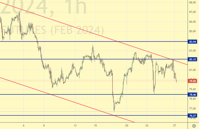 Продажа: при подходе к 96.40. Стоп: 97.40. Цель: 88.00. В случае касания 87.00. Стоп: 88.30. Цель: 80.00.