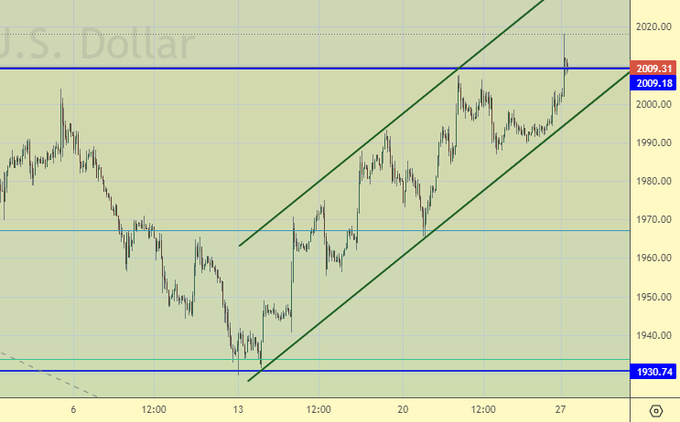 Покупка: нет. Кто в позиции от 2010, перенесите стоп на 1990. Цель: 2400.