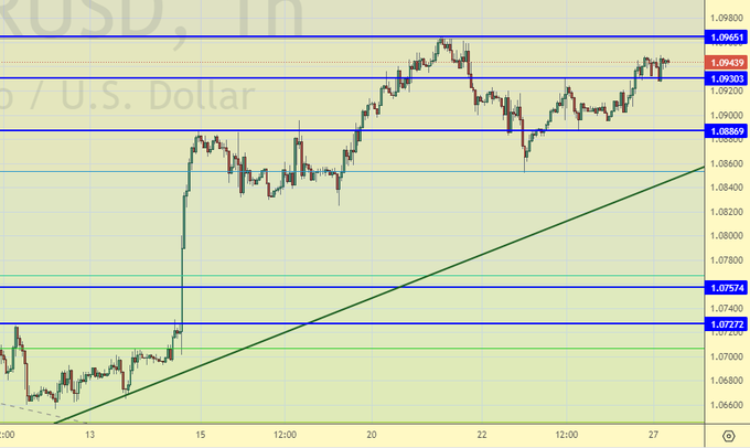 Могли бы мы уйти вниз к 1.0800? Да, но пока этого не происходит. Не исключено, что доллар сегодня продолжит падать и к этому надо быть готовым. Будем покупать в случае роста выше 1.0980.