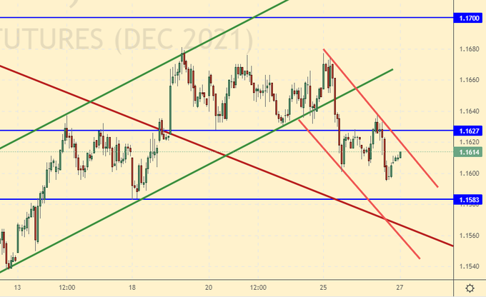 Продажа: нет. Кто в позиции от 1.1620, перенесите стоп на 1.1642. Цель: 1.1050?!
