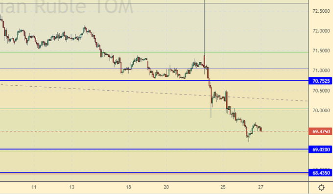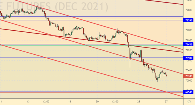 Продажа: при подходе к 70.70. Стоп: 71.10. Цель: 68.50.