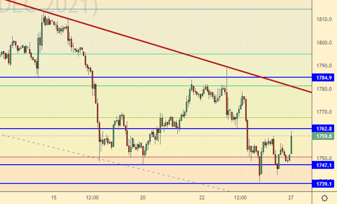 Покупатели не дают золоту уйти ниже 1730. Если такая ситуация продлится несколько дней, то число покупателей значительно вырастет. В случае подъема рынка выше 1800 покупать обязательно. Текущие уровни также привлекательны для входа в лонг.
