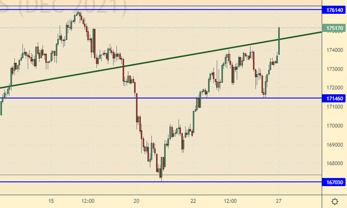 В США индекс SP500 не желает падать, что придает сил быкам и на локальных рынках. Индекс РТС на фоне высоких цен на энергоносители и продолжающего укрепление рубля идет вверх. Нельзя исключать, что сегодня котировки поднимутся выше 176000.