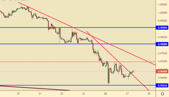 Продажа: в случае роста к 0.9800. Стоп: 0.9900. Цель: 0.8600.