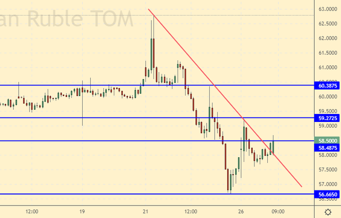Мы продолжим оставаться в диапазоне. Все, кто хотел произвести какие-либо действия с валютой уже это сделали. Пишем прямо: страна находится на пороге введения военного положения. Если не везде, то в приграничных с Украиной областях. Это не сулит ничего хорошего национальной валюте, но пока курс будут держать.
