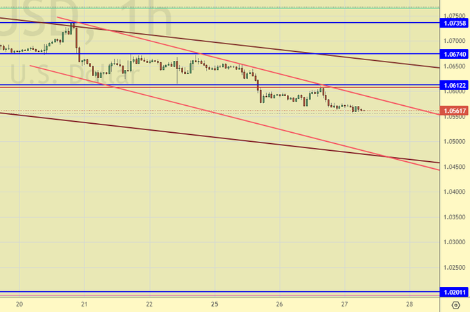 Продажа: нет. Кто в позиции от 1.0650 и 1.0630, перенесите стоп на 1.0630. Цель: 1.0200.