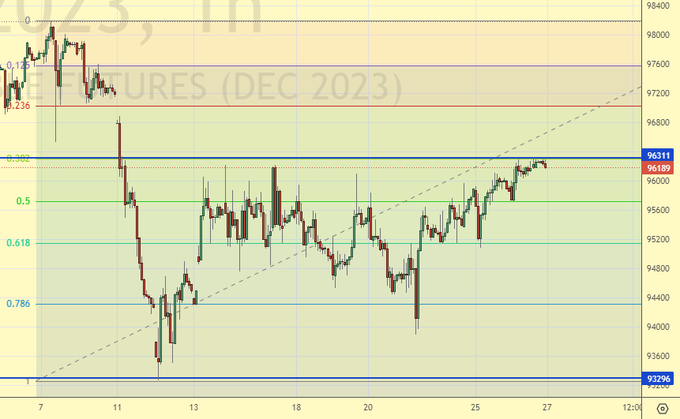 Продажа: нет. Кто в позиции от 97.00, держите стоп на 97.60. Цель: 90.00.
