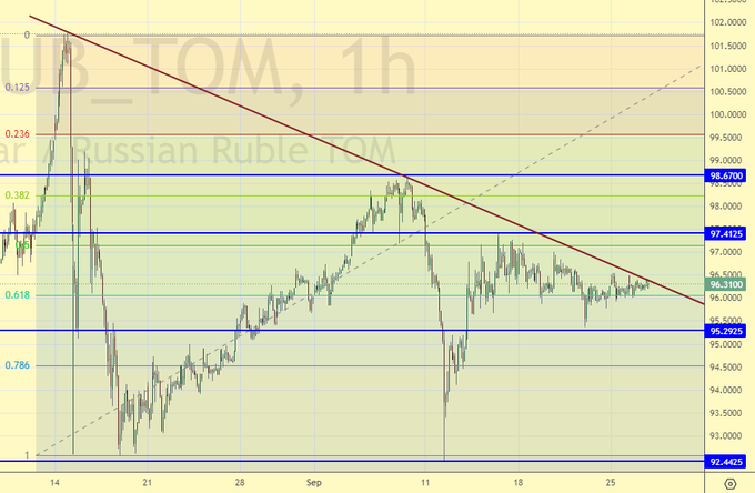 Бюджет на следующий год будет оборонно-секретным. Заложены доходы в размере 35 трлн. рублей и расходы в размере 36.6 трлн (на это год 29 трлн.). Где-то будут брать 9 трлн. доходов по сравнению с текущим годом. Ах, да, у нас же упал рубль. Ну, вот и нашлись доходы. А еще поднимут налоги, займут и напечатают. Пока будем настаивать на покупках рубля против доллара, но это продлится не долго.