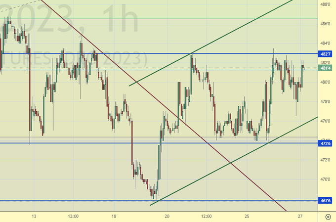 Продажа: нет. Кто в позиции от 481.0, держите стоп на 484.0. Цель: 425.0.