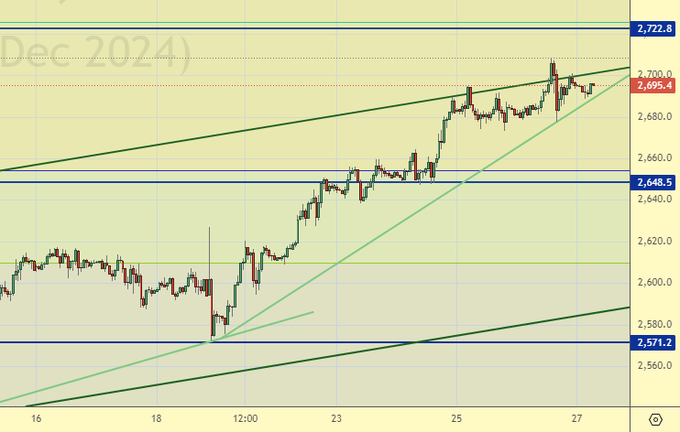 Покупка: нет. Кто в позиции от 2618, перенесите стоп на 2687. Цель: 2722 (2838).