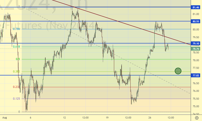 Покупка: при подходе к 77.50. Стоп: 76.50. Цель: 90.00.