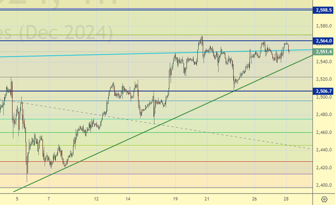 Продажа: нет. Кто в позиции от 2551, держите стоп на 2566. Цель: 2120.