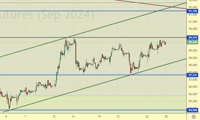 Покупка: в случае роста выше 90100. Стоп: 89100. Цель: 100000.