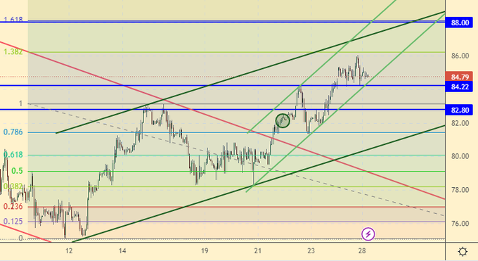 Покупка: нет. Кто в позиции от 82.00 и 82.10 держите стоп на 82.10. Цель: 88.00 (96.00).