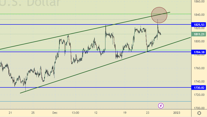 Покупателей заманивают выше 1820 после чего мгновенно следует распродажа. Это очень похоже на вход в шорт какими-то кукловодами. Здесь нельзя теряться. В случае падения рынка ниже 1793 будет интересно продать. Открытые ранее лонги держим.