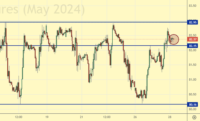 Продажа: сейчас (82.37). Стоп: 82.90. Цель: 68.00.