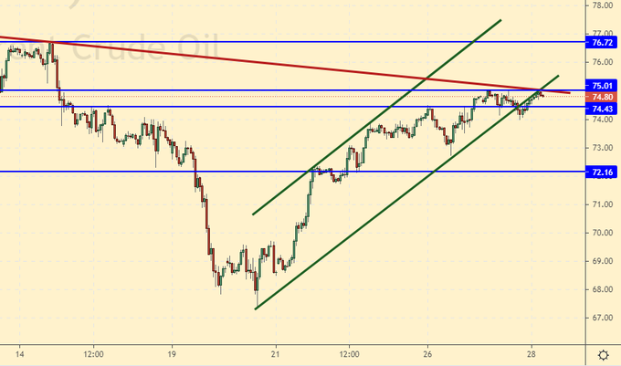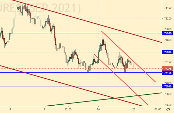 Продажа: нет. Кто в позиции от 74.10, перенесите стоп на 73.96. Цель: 70.00.