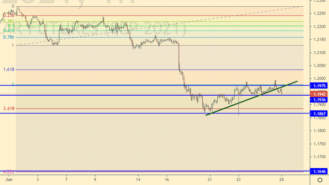 Участники торгов будут ждать на этой неделе результатов встречи ОПЕК в четверг 1-го июля. Не исключено, что ряд трейдеров начнет делать ставки на исход встречи уже сейчас. Некоторый рост добычи со стороны ОПЕК+ на фоне восстановления экономики воспринимается как адекватный, поэтому возможна стабилизация цен на текущих уровнях до заседания, и некоторое падение сразу после.