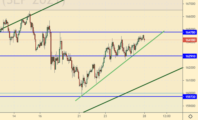 Покупка: нет. Кто в позиции от 164000 и 163000, перенесите стоп на 162900. Цель: 166000 (200000!).