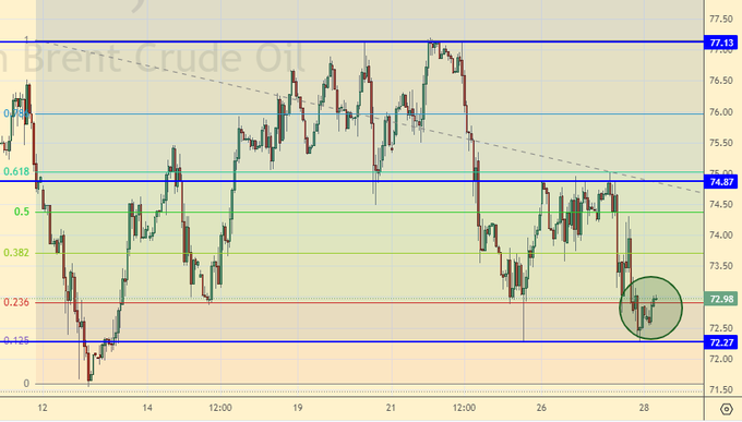 После снятия напряженности внутри России цены на нефть снижаются, приблизившись к 72.00. Данный уровень является нижней границей давно установившегося диапазона, который сформировался в результате борьбы между ОПЕК+ и Вашингтоном.