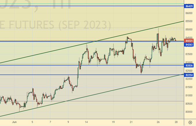 Покупка: нет. Кто в позиции от 84200, держите стоп на 83800. Цель: 90000.