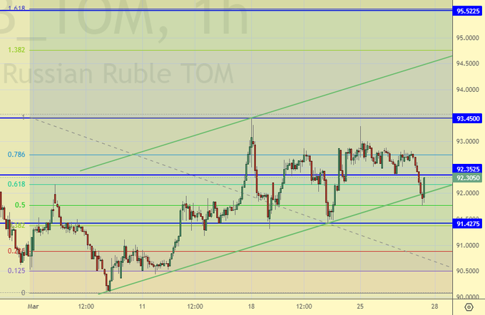Видим нервные попытки пробиться к 91.50, с целью попробовать данный уровень на прочность, для того чтобы пройти к 90.00. Вот только сообщения о том, что оплата за поставленные ресурсы задерживается уже на несколько недель, не добавляет оптимизма. Пока вне рынка.